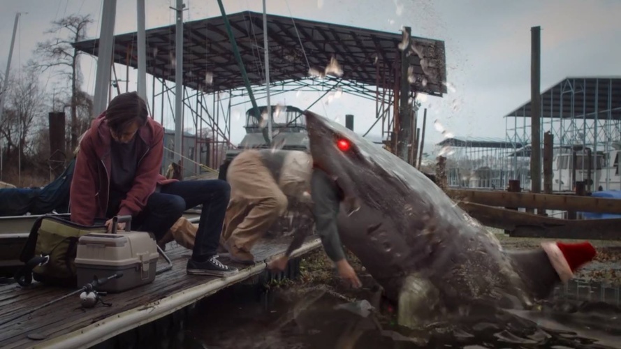 Do not approach Santa Jaws expecting award-winning special effects - after all, we are dealing with the Syfy channel here. The CGI is not always aggressively terrible in terms of texturing, but the movement is a different matter: the shark never moves naturally or believably. However, the Santa-hat-clad dorsal fin is at least a practical effect, which is rare in such productions. The attack scenes are uproarious, and director Talley compensates for the awful digital effects by keeping the movie's tongue firmly planted in cheek. I mean, one victim loses his legs when the shark pushes a boat into him. One would also think that characters could survive by staying away from the water, but that's clearly too difficult.